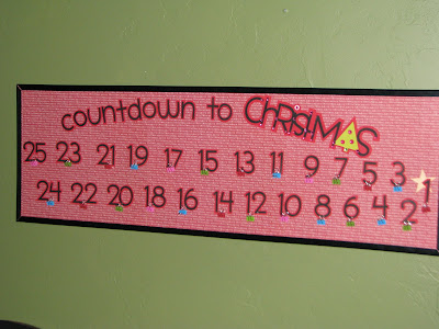 Every year we do some type of countdown to Christmas for the kids. This year, Ashton wanted something new and different....so I bought a frame and whipped out the cricket the other night. This is what we came up with...